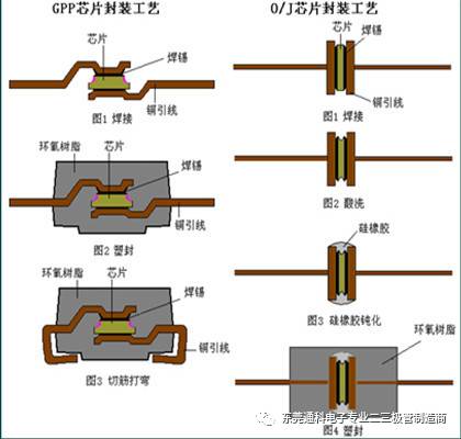 1) 由于结构的不同,当有外界应力产生(比如进行弯角处理),器件进行冷热冲击,如果塑料封装体有漏气,等等情况下。OJ的产品,其保护胶和硅片结合的不牢固,就会出现保护不好的情况,使器件出现一定比率的失效。GPP产品则不会出现类似的情况。